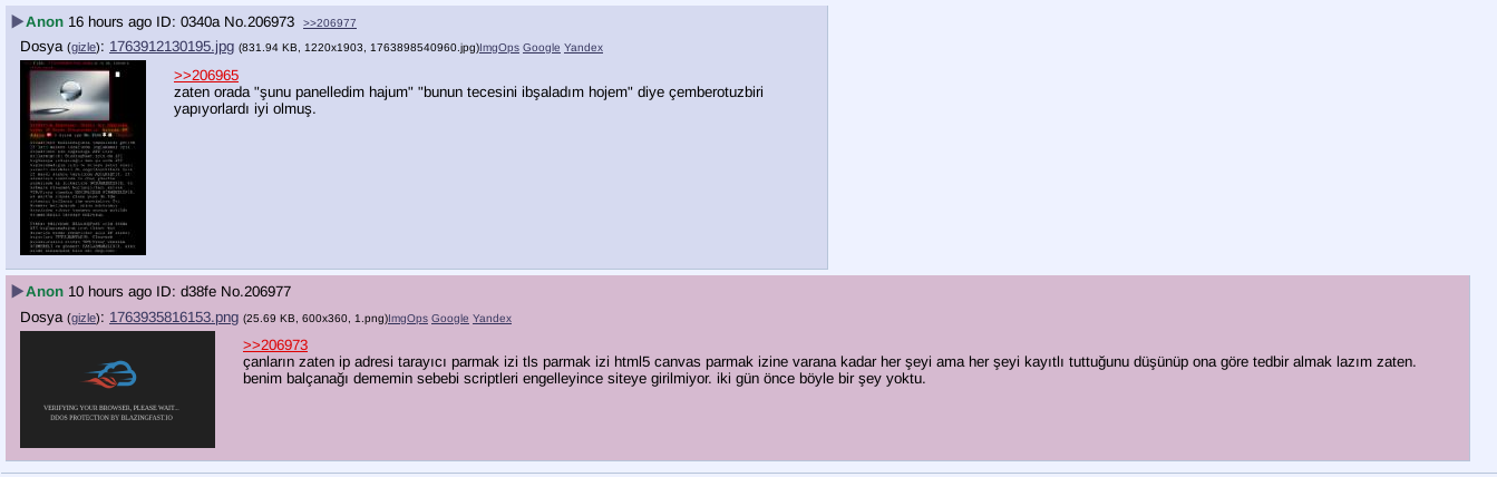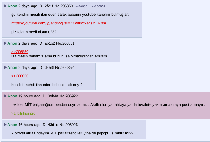 >>3468Anonim olarak yazdığına bakma; büyük ihtimalle Tunay denen Seferad Yahudisi orospu çocuğu bizi aklınca karalamak için yazmıştır, girip bir lurklayım dedim, MİT honeypotu diyor başka da birşey demiyor. Eeee yarrağım kanıtın var mı? Yok. Şüphelerin varsa sebepleriyle birlikte açıkla biz de ona göre ciddiye alınacak birşey söyleyeceksen savunmamızı yaparız. Kendisi IP'leri sızdırır, Tor çıkışlarını VPN'leri banlar sonra bize gelince honeypot der. Biz ne yaptıysak ne yapıyorsak ne yapacaksak herşeyi şeffaf bir şekilde söylüyoruz, söyledik. Şimdiye kadar hiçbir Anonim'i de mağdur etmedik, etmemeye çalışacağız.