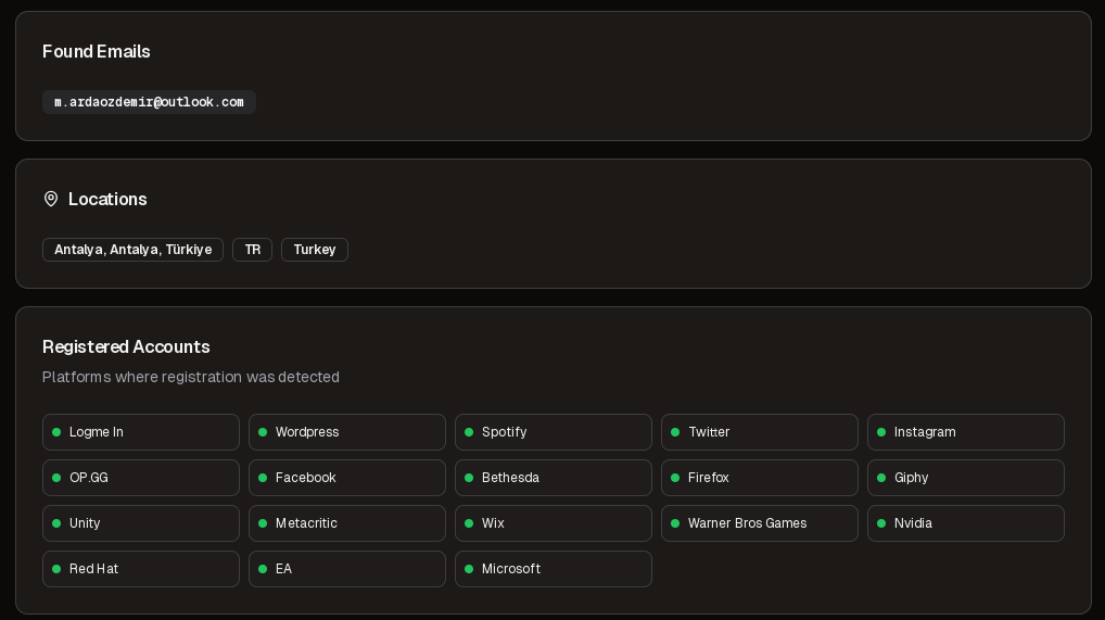 📩E -posta: m.ardaozdemir3545@gmail.com 📆Kayıt tarihi: 10/1/2024 22:59:44 🍚Salt: abe32eb4b189173dbb7a 🎯Ivır zıvır: 78.177.138.72 👤Nick: Muhammed Arda “chief77” Özdemir