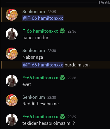 İki Discord hesabım da imha oldu, OnionMail'in 3 ay login olunmayan hesapları silmesi yüzünden literal bok yoluna gittiler, doğrulama kodlarını alamıyorum. VNC'de yeni bir hesap daha kurup ben de biraz kudurtmaca yapacağım.