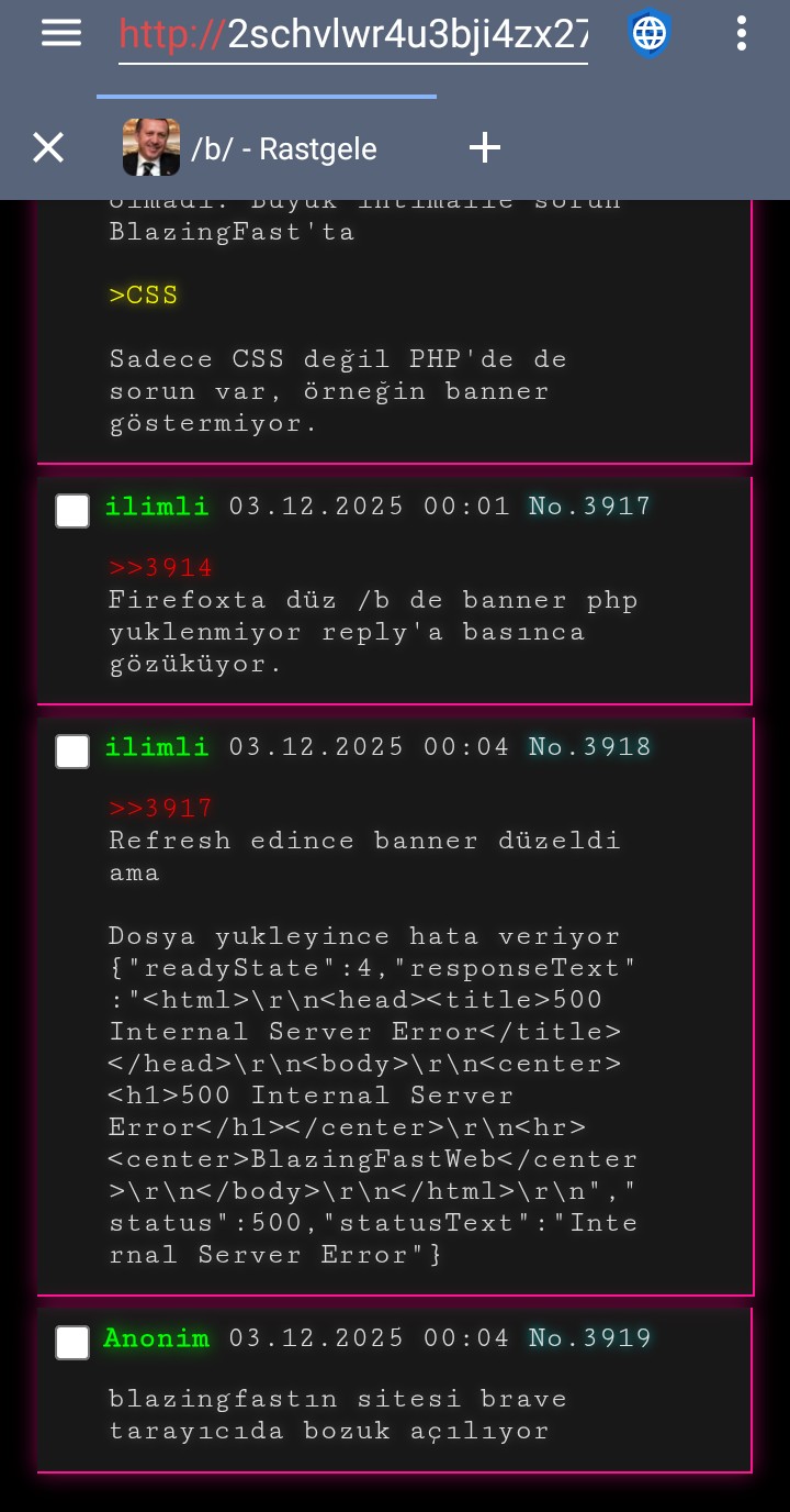 Mobil ve Bilgisayar Tor Browser tarafında (.onion adres için) hiçbir sorun olmadı. Büyük ihtimalle sorun BlazingFast'ta